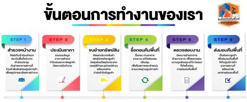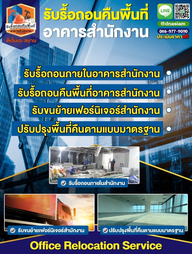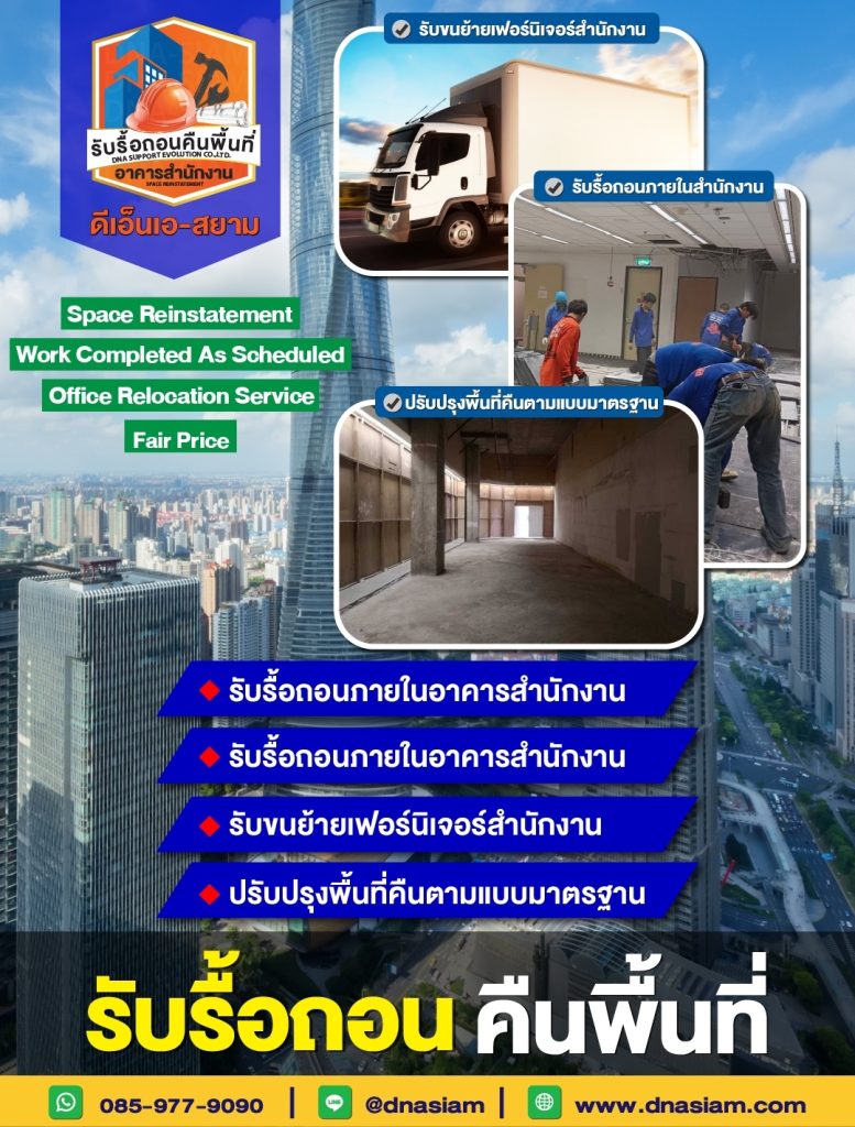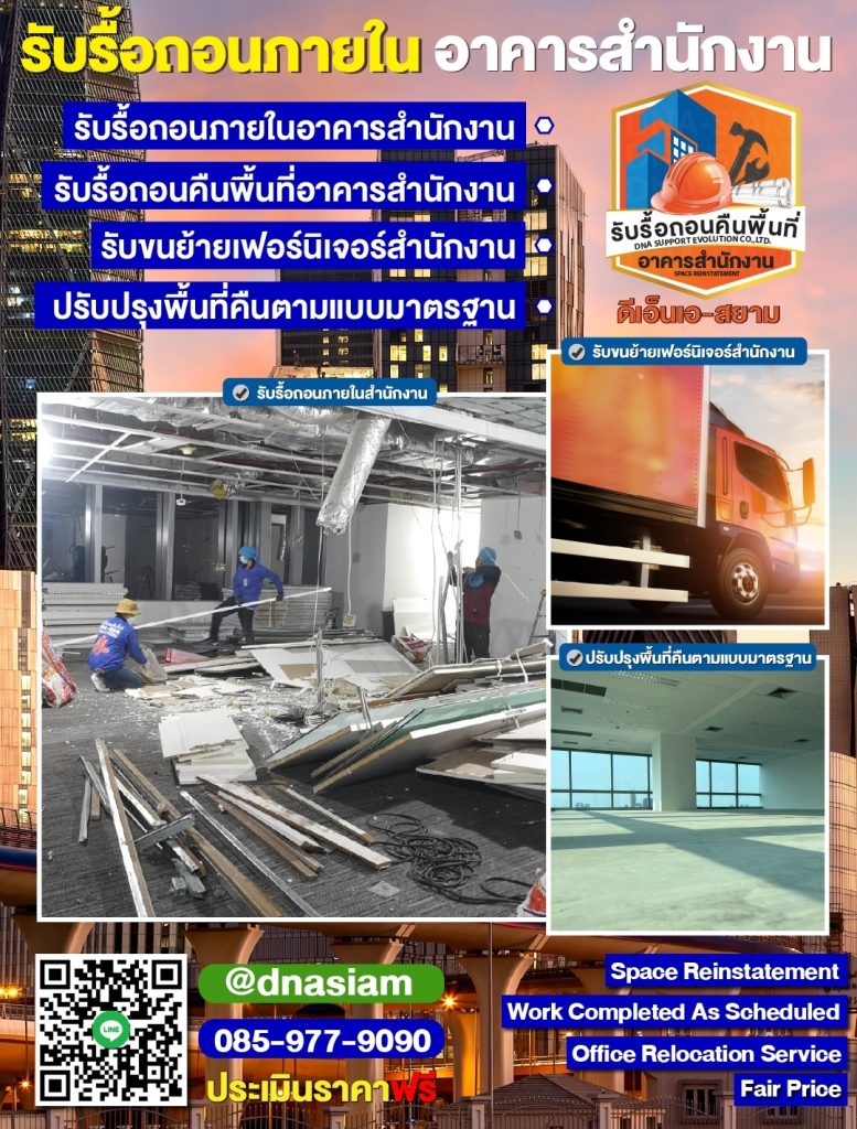 ขั้นตอนการรื้อถอนและคืนพื้นที่สำนักงาน โดย บริษัท ดีเอ็นเอ 085-977-9090